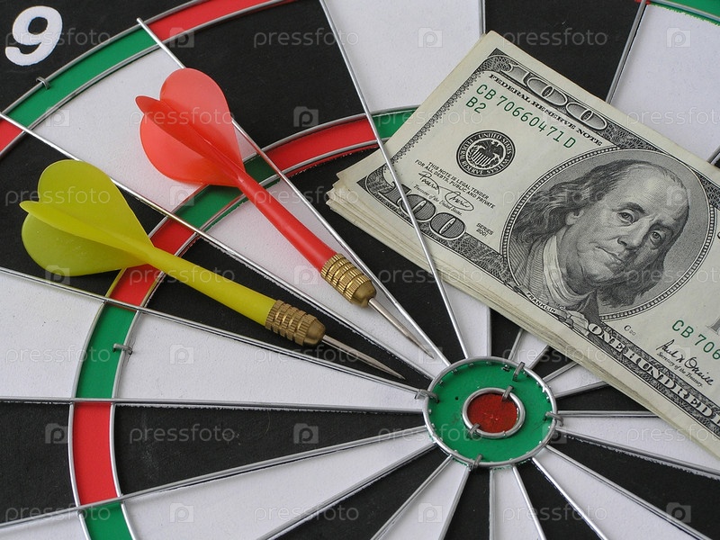Дартс и деньги крупным планом