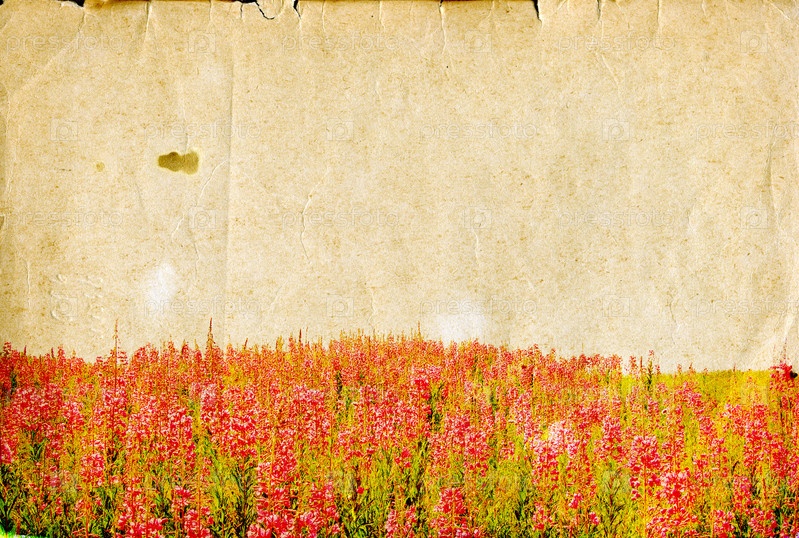 Цветущее поле на старой бумаге