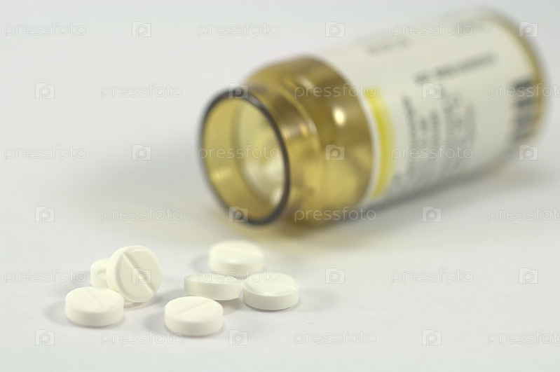 Таблетки и стеклянный флакон