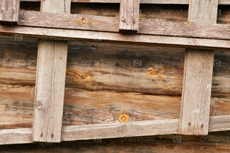 Фрагмент бревенчатого дома и лестницы