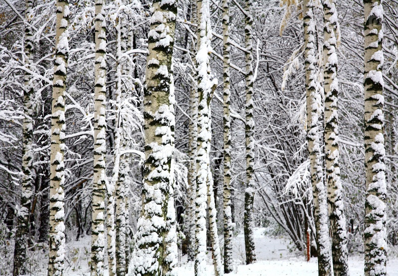Березы в снегу покрыты зимний лес