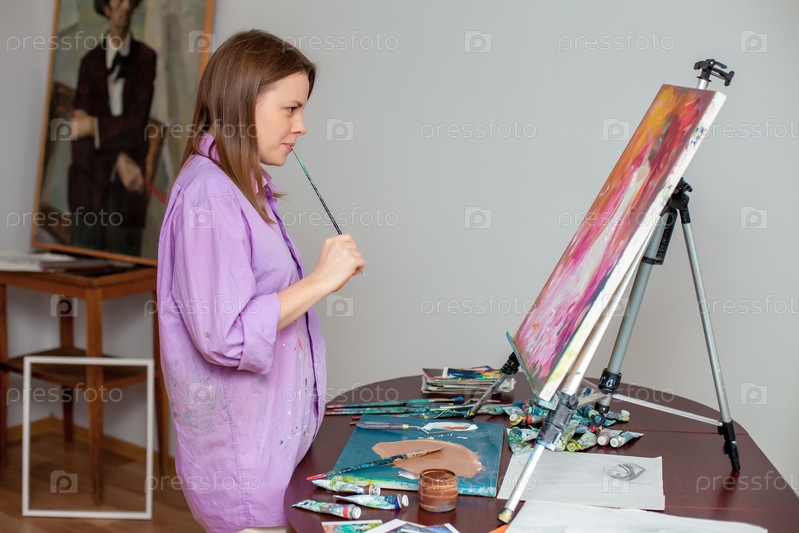 Художница рисует картину