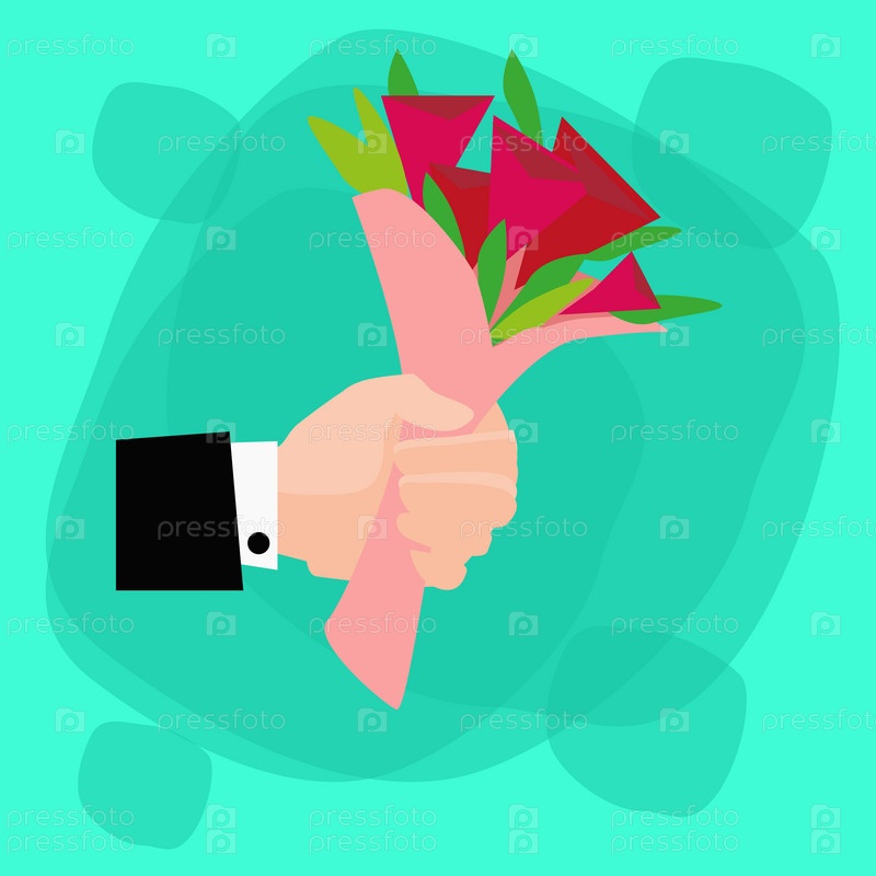 Рука с букетом из красных роз