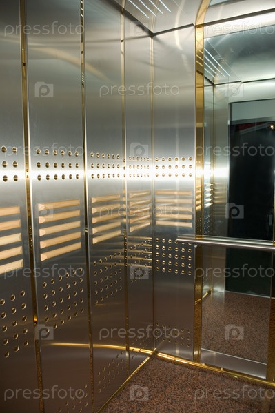 Современный скоростной лифт с зеркалами
