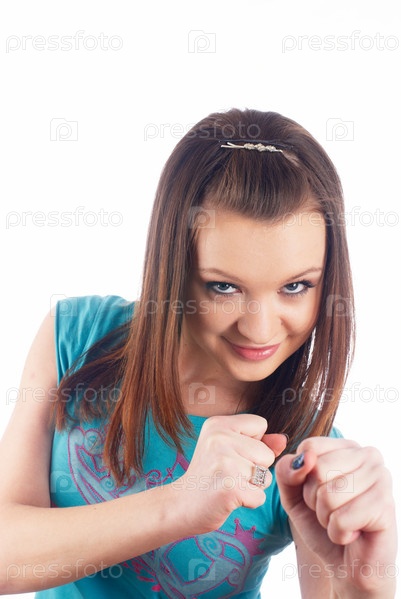 Портрет молодой девушки на белом фоне