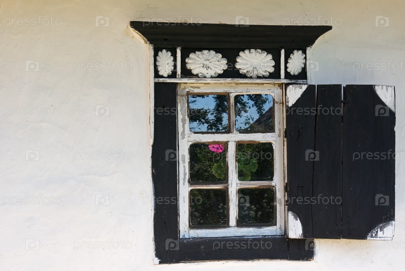 Старое окно на белой стене