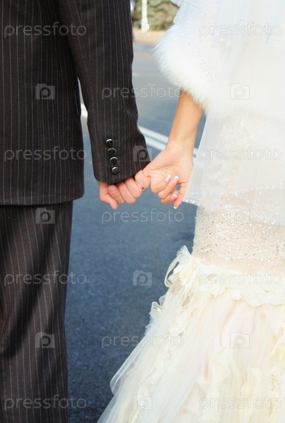 Жених и невеста держатся за руки