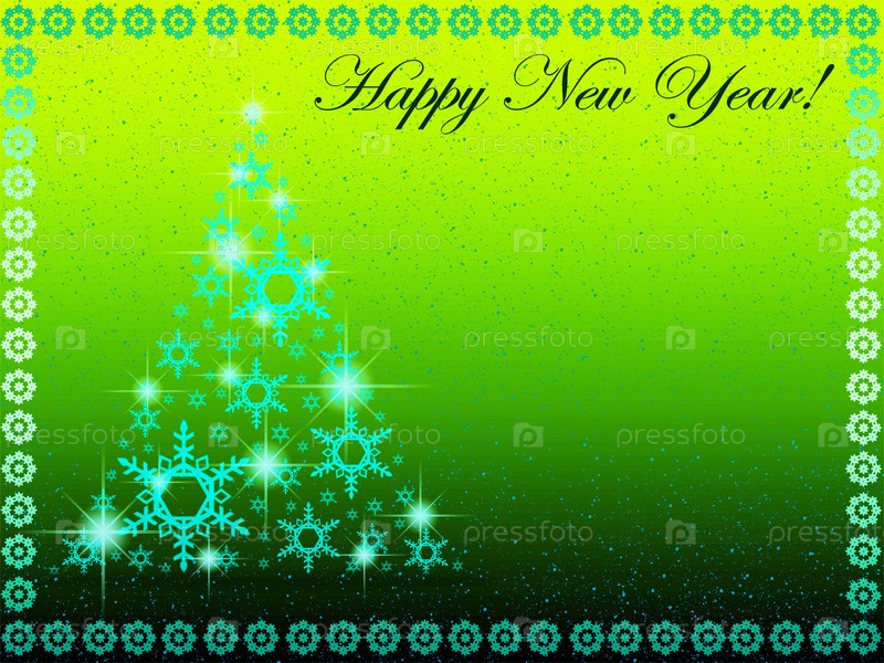 Елочка из голубых снежинок в рамке на зеленом фоне