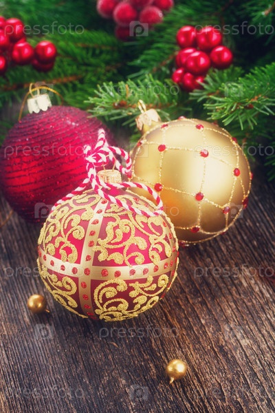 Красные и Золотые елочные шары