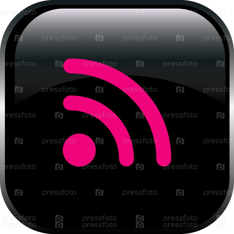 Розовый значок RSS на черном фоне