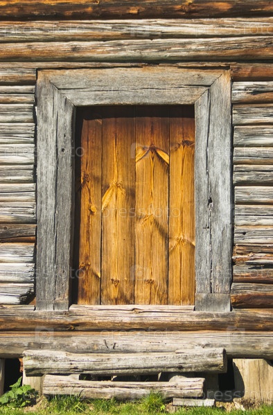 Деревянная дверь в бревенчатом домике