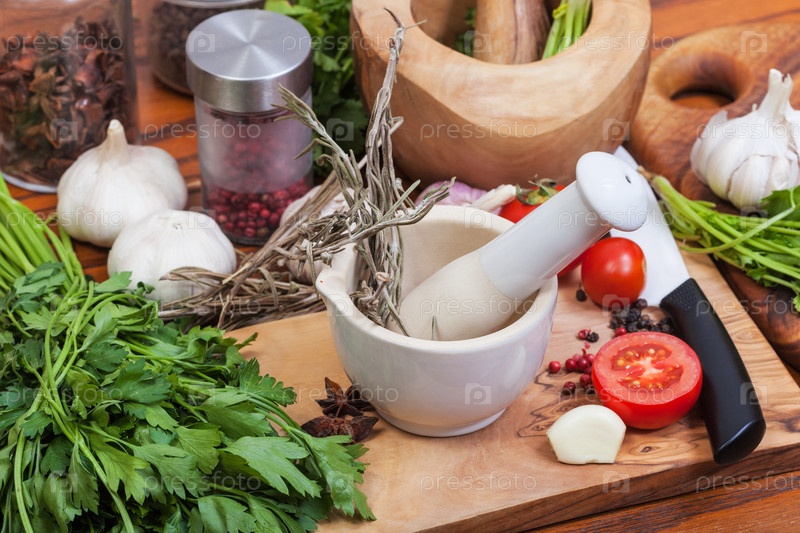 Пестик трава керамическая ступка и специй на таблицы