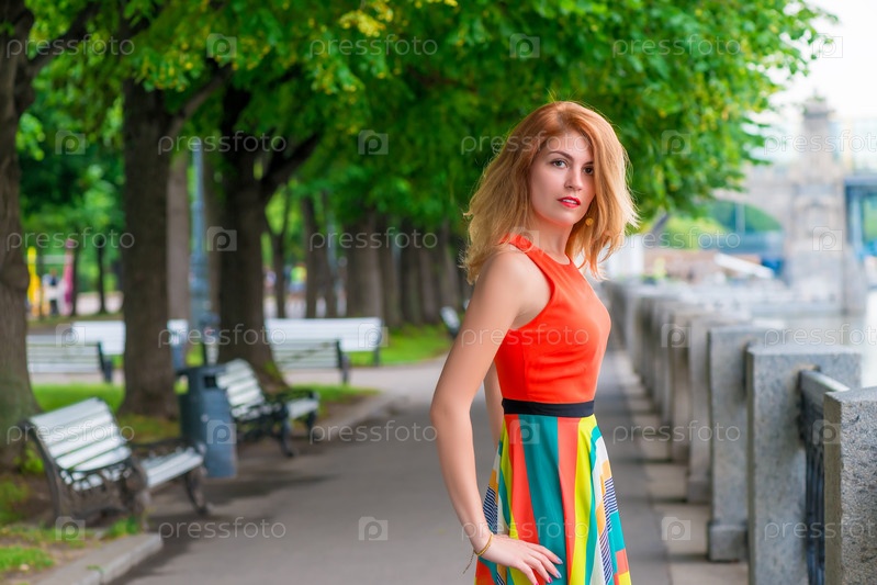 Красивая девушка в летний день на прогулку в город