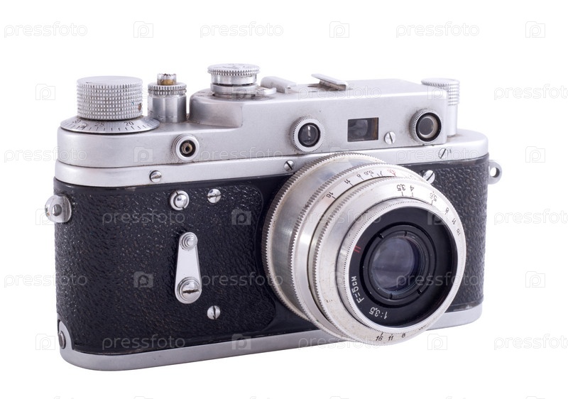 Изоляция старой российской фотокамеры. белый фон