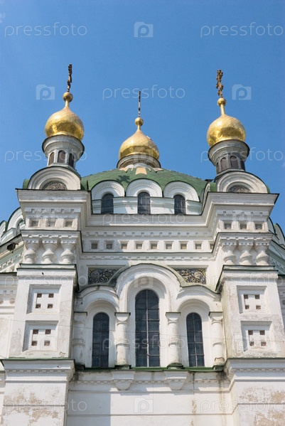 Купола православной церкви на фоне голубого неба