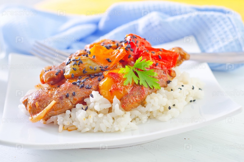 Вареный рис с мясом и овощами