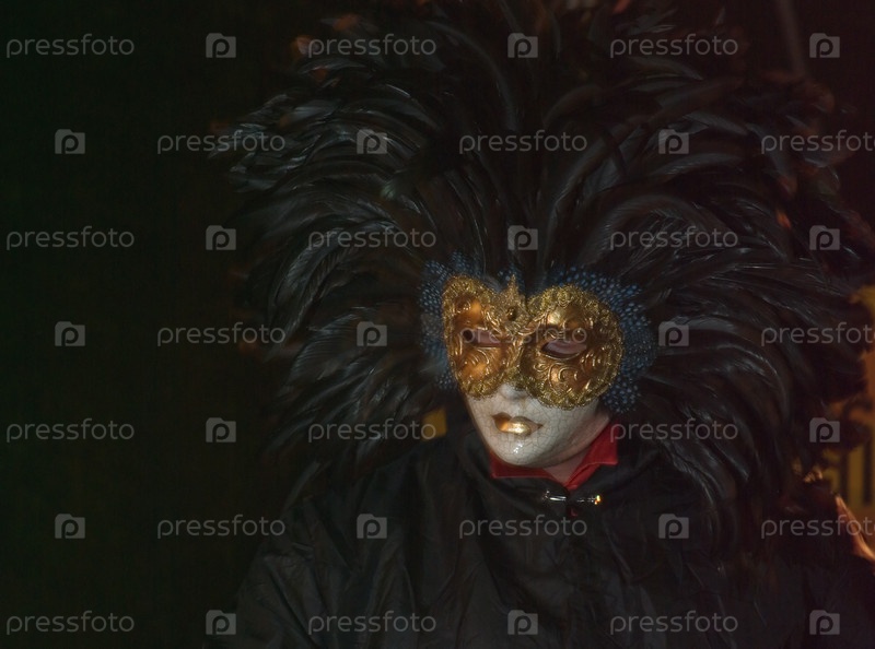 Человек в венецианской маске на черном фоне