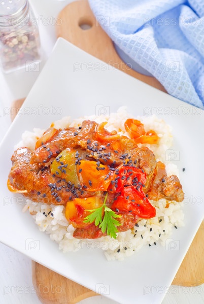 Вареный рис с мясом и овощами