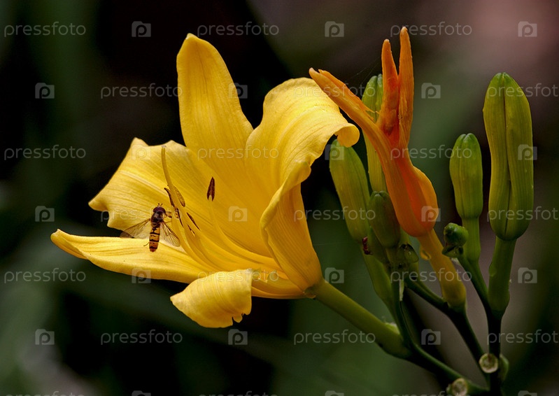 Оса на желтой лилии