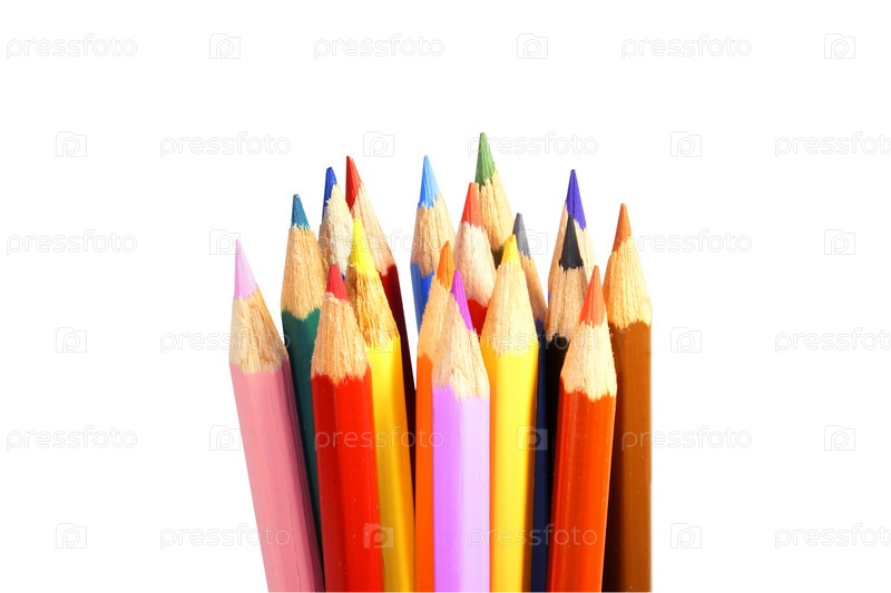 Набор цветных карандашей для рисования, разложенный один за другим на изолированном белом фоне