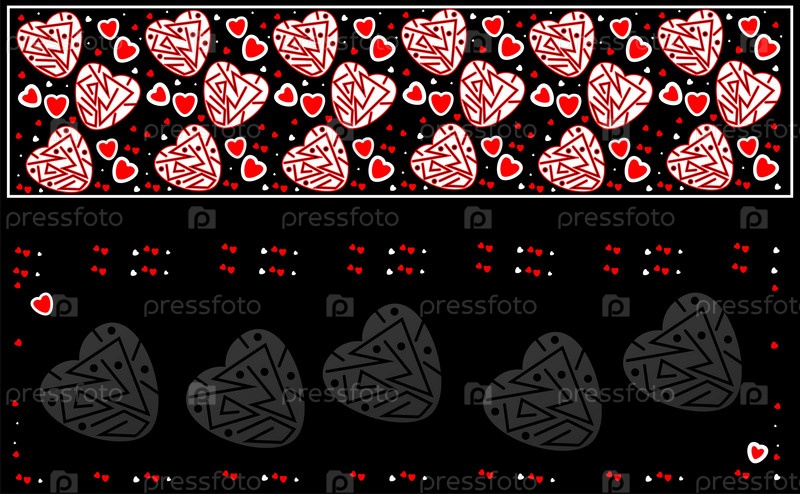 Черные и белые сердечки на черном фоне