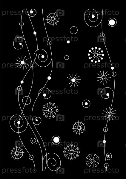 Рисунок из белых линий и цветочков на черном фоне