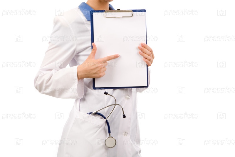 Близкий план медсестры, указывающей на пустую бумагу в руках