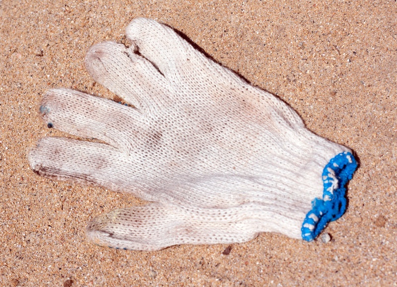 Грязная рабочая рукавица с голубой косулей опирается на песню