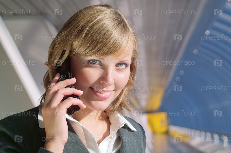 Красивая молодая бизнес-леди разговаривает по телефону