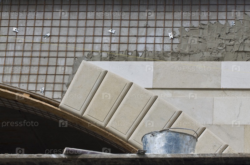 Работы по облицовке плитками из натурального камня нового здания