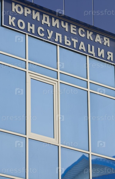 Вывеска Юридическая консультация на фоне слекляного здания