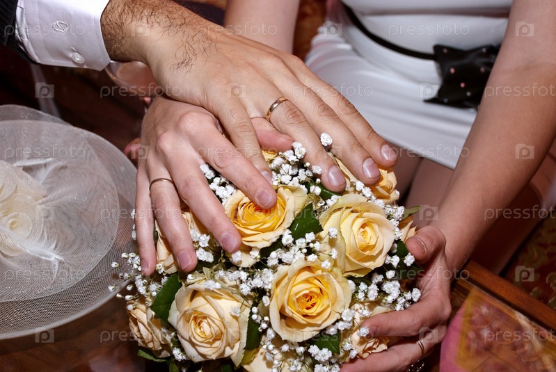 Свадебный букет в руках молодоженов
