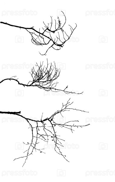 Силуэт ветвей дерева на белом фоне