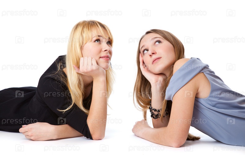 Две молодые подруги, изолированные на белом фоне