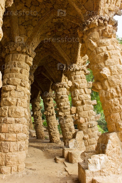 Каменные арки в Парке Гуэль, Барселона, Испания