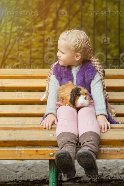 Красивая маленькая девочка с морской свинкой