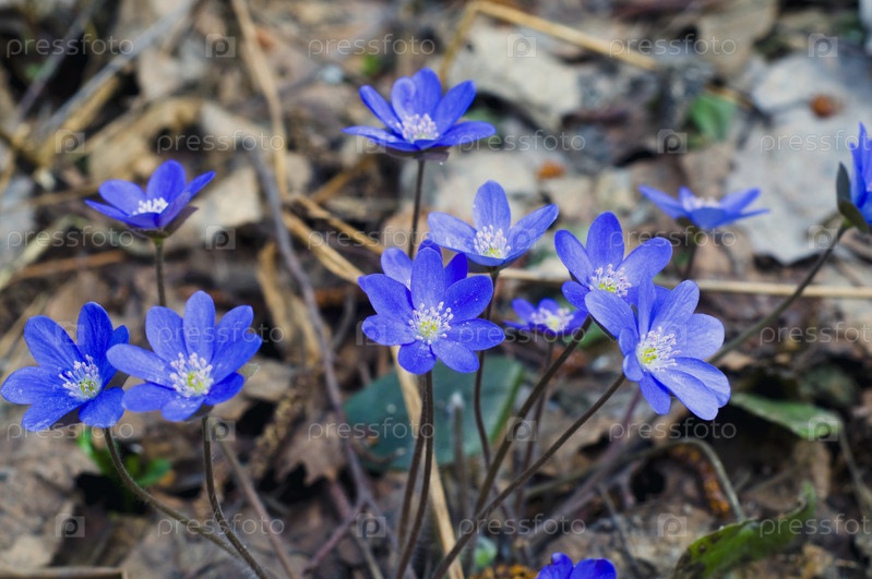Кустик подснежников в весеннем лесу