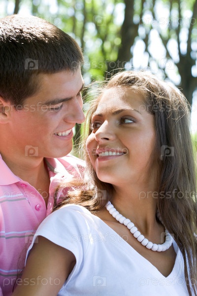 Портрет привлекательной пары, улыбающейся друг другу