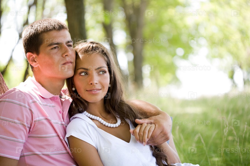 Изображение влюбленной пары, держащей друг друга за руки во время отдыха снаружи