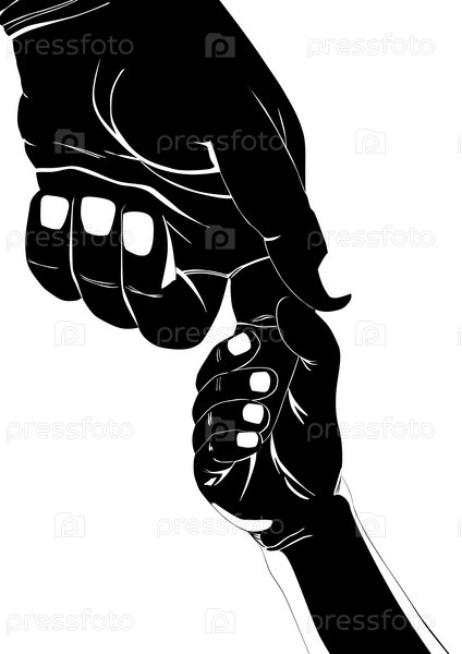 Детская рука держит за палец руку взрослого человека