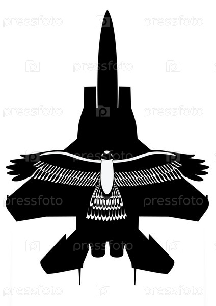 Птица на фоне самолета на белом фоне