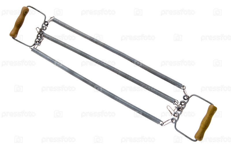 Пружинный эспандер на белом фоне