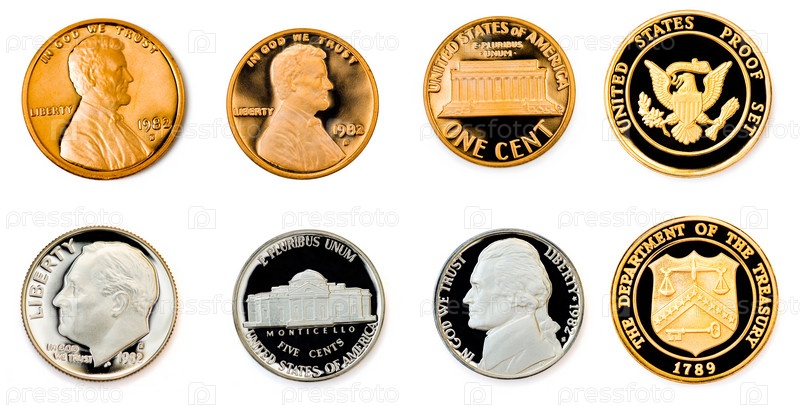 Монеты США на белом фоне