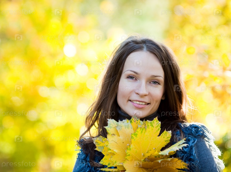 Женщина с осенними листьями