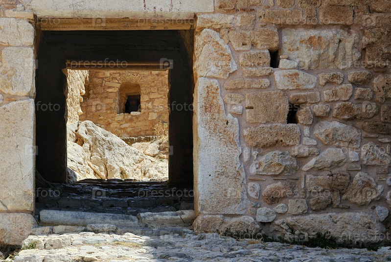 Вход во двор старой крепости древнего города Коринфа. Пелопоннес, Греция