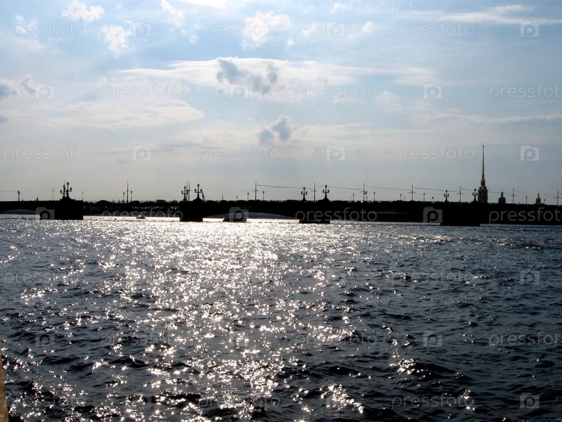 Вид на Петропавловскую крепость с Невы на закате