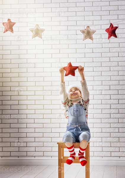 Ребенок вешает звезды