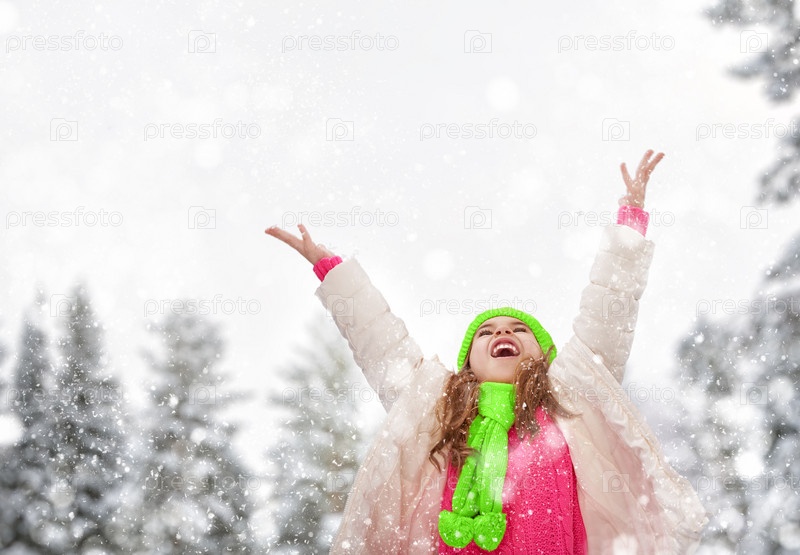 Девушка играет на прогулку зимой