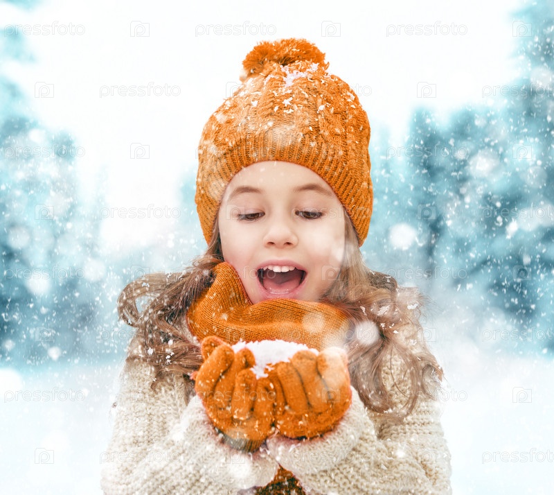 Девочка играет зимой