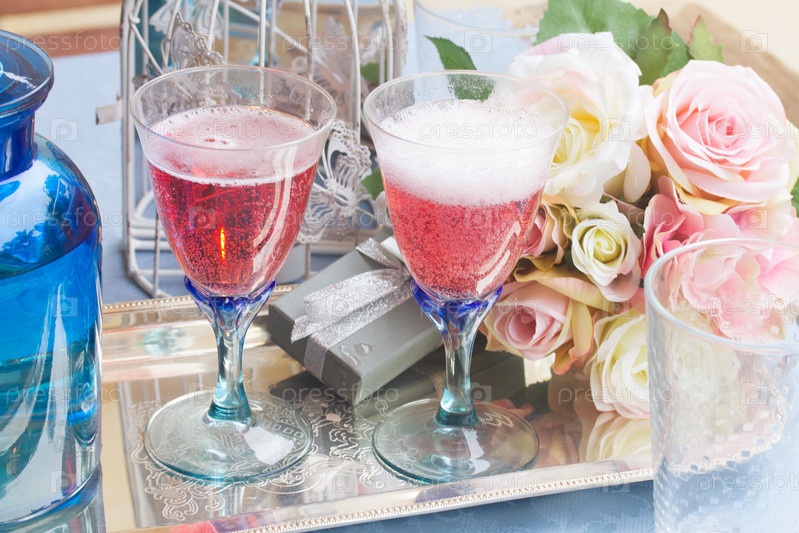 Бокалы розового игристого вина